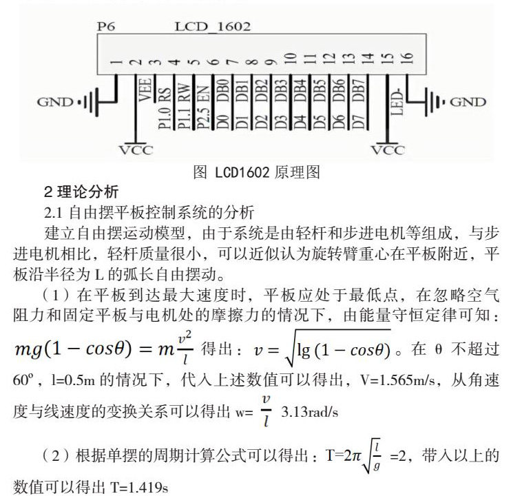 此次基于自由摆的平板控制系统设计,以单片机为控制核心,采用1000线增量型旋转编码器实时采集自由摆旋转角度及方向信息,并通过步进电机开环控制平板旋转角度,以实现控制要求。达到了在一个周期里电机精确旋转一周;平板角度调整速度快,硬币滑动小无跌落;总结该设计的实现过程,具有以下三个方面的优点: