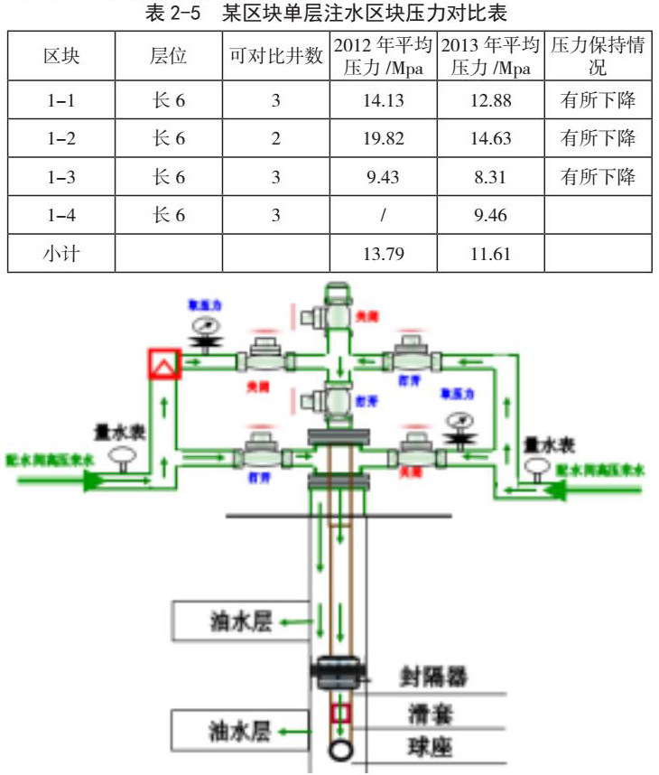 从上表数据可以看出,单层注水区块整体压力水平稳中有升,压力保持较好,能够满足开发需要。