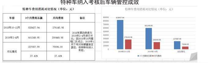 2、辅助运输车辆考核逐渐完善并覆盖范围逐渐宽广深入,考核呈现精细化,管控成效逐渐显现。在市场化考核初期,将固定人车、材料车及部分工程用车纳入考核,经历了台班定额到里程定额的改变,然后将特种车、装载机纳入考核,再到将机关科室监管工程用车和日常入井检查用车纳入到考核,到现在将车辆饱和度、压车纳入到考核,实现了车辆管控的持续改进与精细化,管控成效也逐渐明细。尤其是912特种搬运车纳入考核后,特种车辆使用费用降低达27.14%。