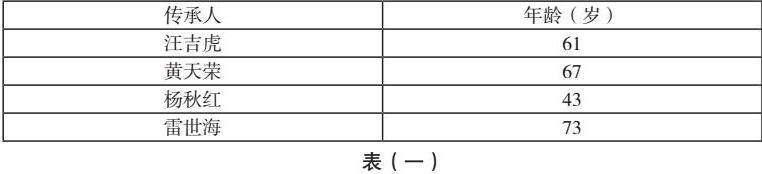 第四,传承人出现老龄化现象,如下表一所示,传承人年龄大多高于60岁,其平均年龄超过60岁,部分传承人仍未找到学徒或学徒较少。