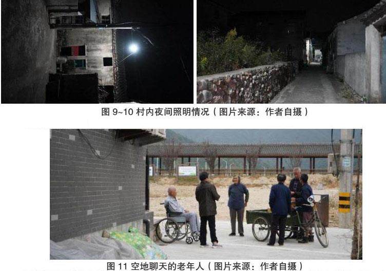 根据走访发现,村内道路狭窄且坑洼,步行与车行动线混乱;村内公共卫生间数量极少,覆盖面极小;夜间仅上杨体育场与下杨商店处有明亮的路灯,村内道路照明覆盖率低(图9~10),村民在夜晚非必要不出门,在家中娱乐打牌或在自家院内、自家门外进行农业作业。老人与儿童作为村中使用公共场地的主要人群,应优先考虑其在生产生活中的使用需求,创造利于老人和儿童使用的公共活动空间,提高其户外活动质量。