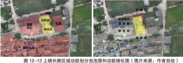 重新划分功能分区,将距离居民住所较近的空地作为村民晒谷的场地,距离村民住所较远的空地作为休闲场地(图12~13),场地原有功能及设备保持不变。