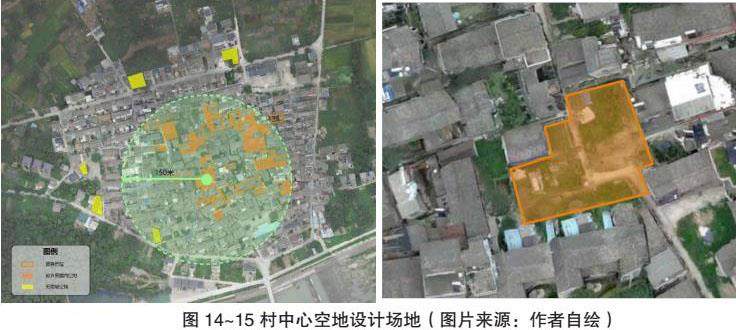 由于村内未开发公共空间数量较多,选取典型地点作为设计场地,节省人工与开支,为余下的场地开发设计作范例。经过勘察,村中心存在一片三合一的空地,可达性较高,覆盖面积较广,适宜作为设计场地(图14~15)。