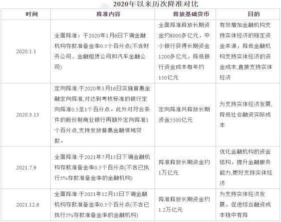 2021年12月,金融机构的存款准备金比率将降低0.5%。