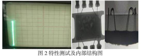 温湿度传感器共8个引脚,其中PIN1—PIN7对PIN8(GND)具有二极管特性,失效温湿度传感器PIN4(时钟脚)、PIN5(电源脚)对地短路,失去二极管特性,如图2(左)对比正常品使用X光观察,失效温湿度传感器内部金线正常,无交叉短路、金线塌丝等,晶圆无银浆爬高、焊料残留异常,如图2(右),排除内部结构异常,分析为晶圆本身失效,需进一步进行化学开封分析。