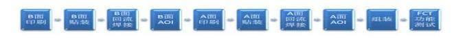 该产品为双面锡膏板,U1(温湿度传感器)先进行B面贴装并回流焊接,之后A面贴片元件并再次回流焊接,通过在各工序间增加额外的测试环节验证,排除传感器来料短路以及B面AOI之前各生产环节导致失效的可能,锁定失效环节在A面印刷——A面AOI之间,具体生产流程如下: