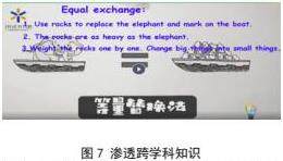 活动2:观看视频,了解曹冲称象的原理。有了语言框架的帮助,学生对“等量替换法”原理的理解难度减轻了,这个环节也是渗透跨学科知识的有效途径。