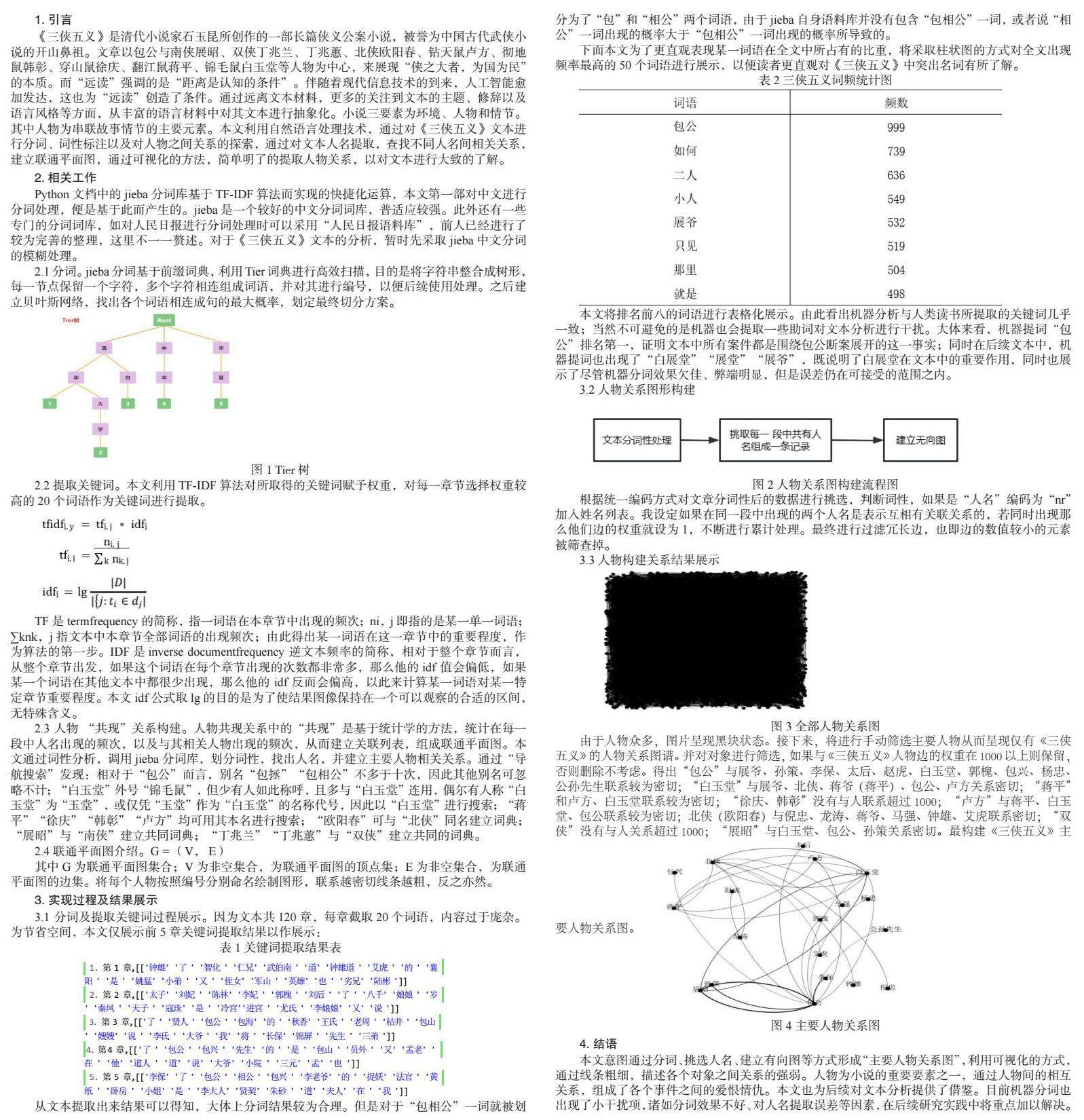 关键词:《三侠五义》 TF-IDF 算法 远读 联通平面图
