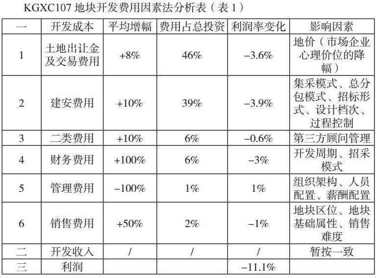 各房地产开发企业为更好地把握市场,了解企业开发水平,特别是在开发成本控制和在同行业所处地位,增强企业的竞争优势就显得更加紧迫。开展同行业开发成本的对标能更好地了解同行业开发成本控制水平,是查找企业自身综合效益低下原因的有效手段。以开发成本结果为导向,推动对内因的优化改革,笔者对一个实际项目对成本费用采用因素法拆分进行了对比分析(表1)。