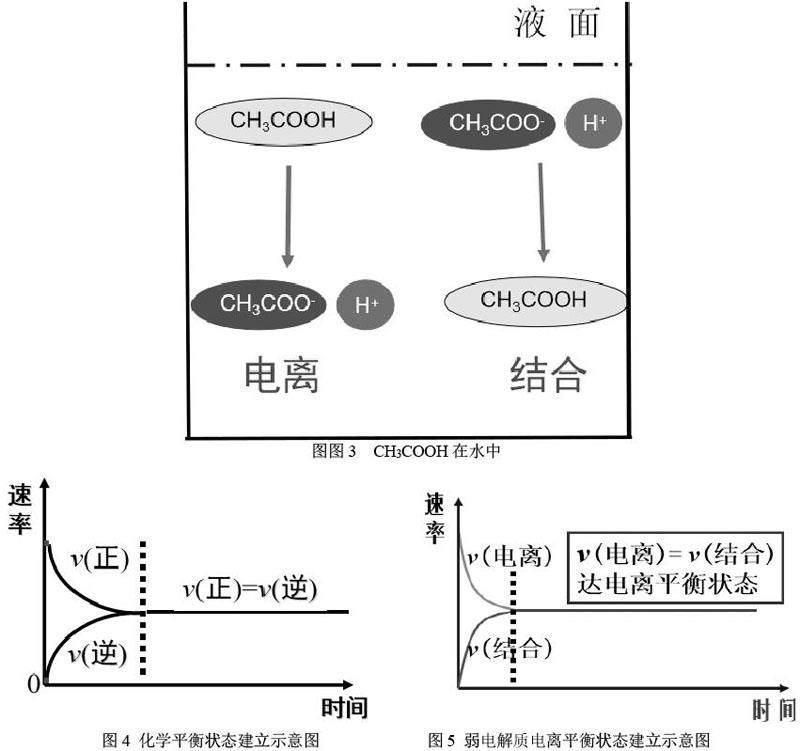 问题3:观察分析图3,醋酸分子的结合和电离与化学平衡中的什么行为相似?