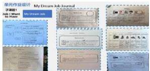 2.基于单元作业目标,形成作业资源,规划作业内容。在厘清单元重、难点,设计学习评价后,制定单元作业目标。本单元作业目标:Keeping a journal can be a vital step in our personal growth。通过个人、小组完成职业梦想手账,能谈论、介绍家人的职业以及自己、同伴未来的职业选择,最终完成My Dream Job Journal,探究职业的乐趣与意义,体会每个职业的重要性,明确人生发展方向,初步树立职业理想。