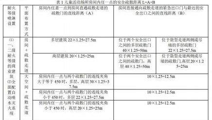 儿童活动场所的房间(或大空间)内任意位置的安全疏散距离(L)等于该点直接通往疏散走道的疏散门的直线距离(A),再加上从该疏散门到最近安全出口的直线距离(B)。具体详表1。(注:有消防技术规范难点操作技术指南的地区,需同时满足地方规定。)