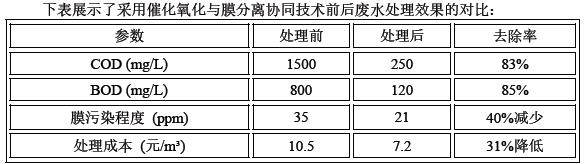 下表展示了采用催化氧化与膜分离协同技术前后废水处理效果的对比: