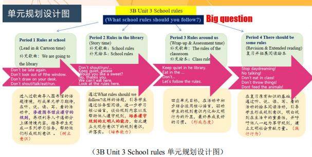 围绕单元Big question: What school rules should you follow?,笔者将本单元分为四个主要课时,匹配单课子主题进行教学实践,具体见下图: