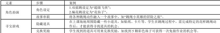在花样跳绳日常课堂教学中可融入游戏元素来增加课堂趣味。案例如下
