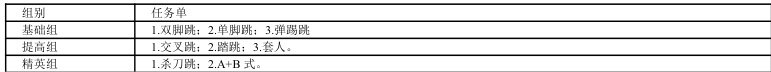 根据学生的跳绳能力将学生分成不同的小组,如基础组、提高组和精英组。在每个小组中,教师针对学生的具体情况进行有针对性的技能引导。案例如下: