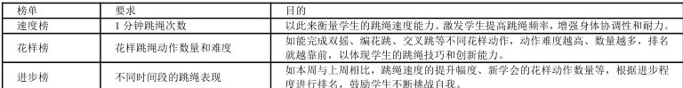 在小学花样跳绳课堂中可设立多种榜单类型,明确榜单更新机制,并结合奖励机制。案例如下: