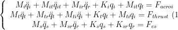 为低速轴方位角位移, m:qt 为塔筒前后位移, m;Mit 为塔筒前后模态质量, kg ; Kit 为塔筒前后模态刚度系数, N/m:Mir 为桨叶模态耦合质量, kgMsr 为风轮旋转方向耦合质量, kg;Ksr 为风轮旋转方向刚度系数, N/m:Faeroi 为第 i 个桨叶气动升力, N:Fthrust 为风轮气动方向推力, N:Tes 为转矩变化扭矩, N⋅m 。