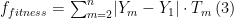 其中 ffuness 为适应度值,无单位; Ym 为 λm 阶跃时刻响应值,无单位;Y1 为响应初始值,无单位; n 为离散化阶跃响应采样点数; Tm 为采样时间间隔, s 。
