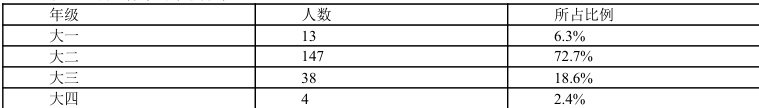 表3-1 调查样本的年级分布