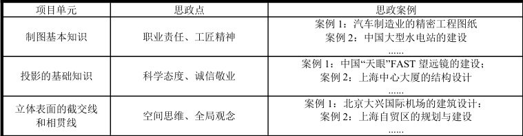 表1 工程图学课程中的项目单元、思政点和思政案例