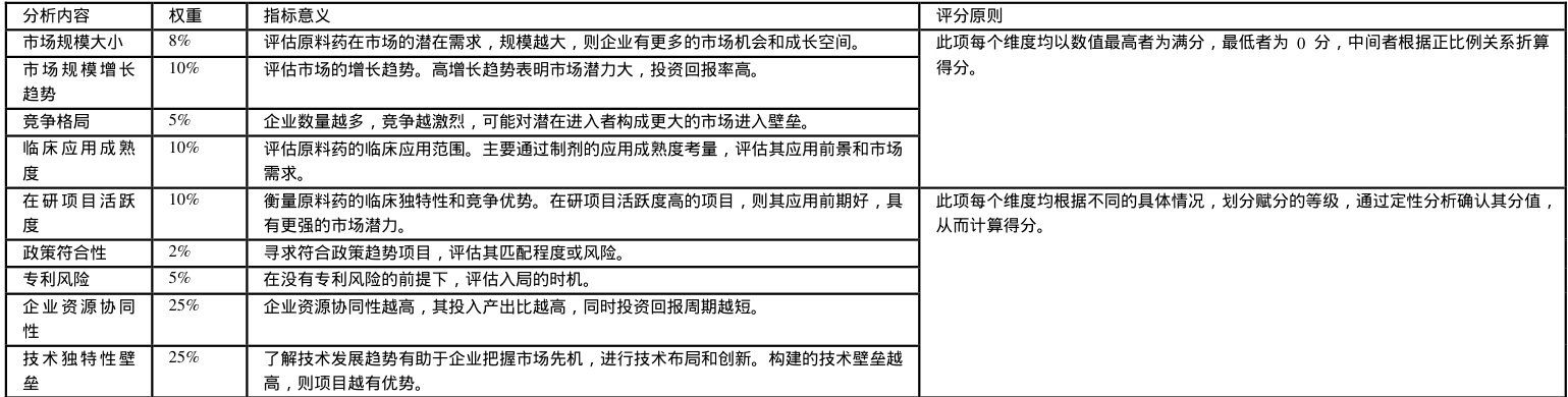摘要:医药中间体企业在面对市场竞争压力或战略布局时,会考虑升级转型至原料药生产企业或原料药中间体一体化企业,在寻找项目或筛选项目的过程中,需要对原料药项目进行评估。本文主要针对筛选原料药项目,从原料药项目价值的各个纬度进行剖析,主要从行业的政策环境、独特性、原料药项目商业价值、临床价值、原料药项目与企业的匹配性等方向建立评估模型。根据所述的这些考量因素建立的筛选模型,供有需求的企业参考。通过对不同模块的具体分析,可建立具体适用性模型,从而筛选出更优更适合的企业自身发展的项目。