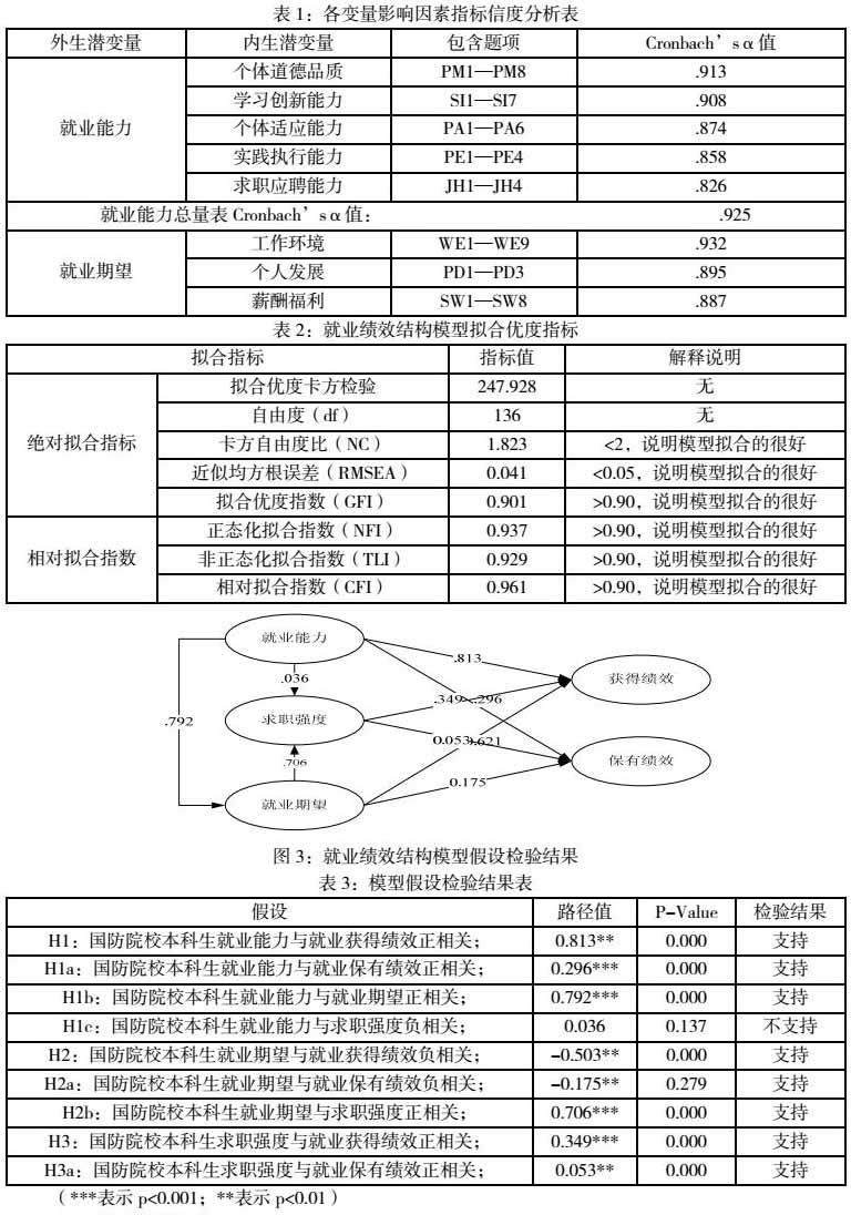 关键词:国防院校本科生;就业绩效;结构方程模型(SEM)