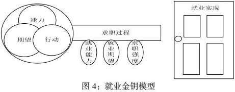 本文根据上述实证研究的结果,从大学生自身角度出发,提出“就业金钥模型”(图4),就业的实现是能力、期望和行动三者的有机统一,在求职过程中只有三者互相协调,才能够敲开高绩效就业之门。