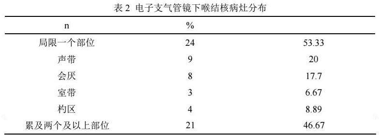 2.2 电子支气管镜下喉结核病灶分布