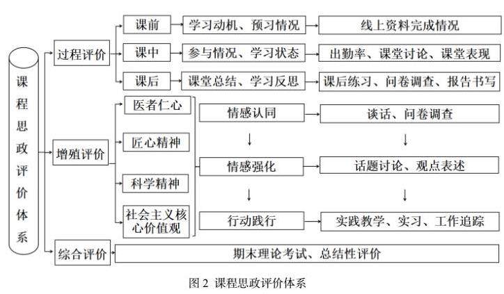 增殖性评价基于教育效果,追踪学生在成长过程中的思想道德发展情况,是一种纵向评价。增殖评价在过程性评价的基础上,通过谈话和问卷调查评价学生的情感认同。通过线上课程或PBL课程中的话题讨论和观点表述,进一步分析情感的强化效果。最后在实践教学、临床实习及未来工作单位的评价追踪学生的实际践行效果。
