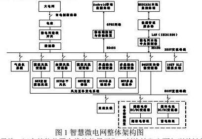 风光储混合微电网系统旨在充分利用风能和太阳能等可再生能源,构建风光储混合发电站。系统的整体架构包括风光互补发电系统、混合储能装置、双向储能变流器、负载、环境监测仪、中央控制器、能源管理服务器、数据传输装置和移动监测终端等多个组件。储能电池组和超级电容通过DC/DC变流器连接至直流母线,再通过PCS变流器接入交流母线;风力发电和光伏阵列