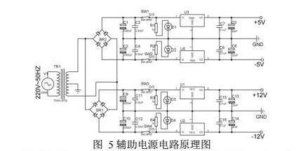 辅助电源电路在系统中承担为主控电路及其他模块提供稳定电源的关键任务。系统采用隔离变压器与稳压芯片组合的设计方案,稳定输出±5V和±12V电压,满足各模块的电源需求,具体设计如图5所示。隔离变压器提供电气隔离,