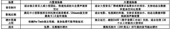 总之,Pro Tools内置渲染器可以覆盖80%左右的杜比全景声功能,能够满足音乐制作、中小型电影项目以及广播电视节目制作的需求;而外部渲染器在电影终混、多团队协作、复杂元数据控制等场景下具有不可替代性。