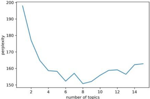 政策文本研究的核心在于根据政策活动产生的客观意义上的文本记录,辅助政策制定者提升政策的科学性和有效性。本文首先利用Python 软件Jieba 包对各职业院校数据安全管理政策进行中文分词操作,在分词过程中构建用户词典和停用词表,将“数据安全”“数据中心”“数据管理”“敏感数据”“生物识别信息”等专用词语加入用户词典,并将各类符号、序号、连词、介词等纳入停用词表,再根据分词结果不断扩充用户词典和停用词表,最终形成适用于主题建模的文本语料库。而后利用Python 软件中的Sklearn 库中的CountVectorizer 模块对文本进行了向量化处理并通过词频模式捕捉了高频词。在以上处理的基础上,利用 LDA(Latent Dirichlet Allocation)主题模型通过计算文本的困惑度(Perplexity)确定政策主题的最优数目,同时结合政策文本精读对主题内容进行了分析。
