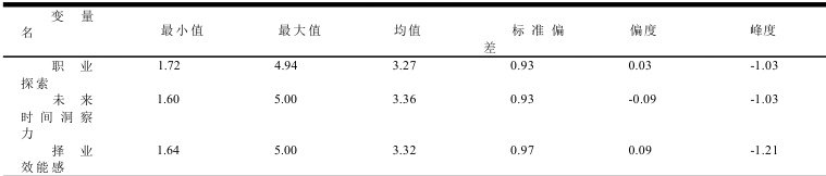 2.1 未来时间洞察力、职业探索和择业效能感的描述性统计