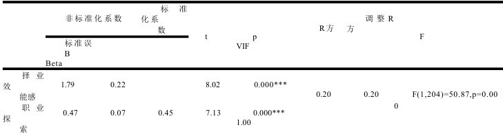2.3.3 职业探索与择业效能感的回归分析