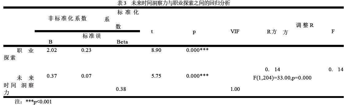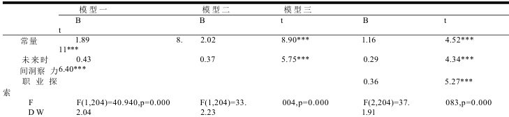 2.3 未来时间洞察力、职业探索和择业效能感的回归分