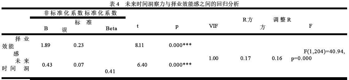 未来时间洞察力与择业性之间的回归分析结果如表4 所示。
