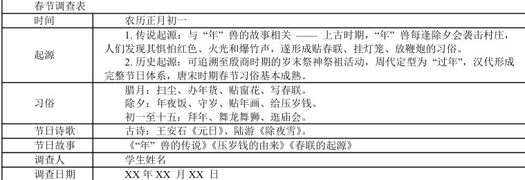 传统节日调查表: