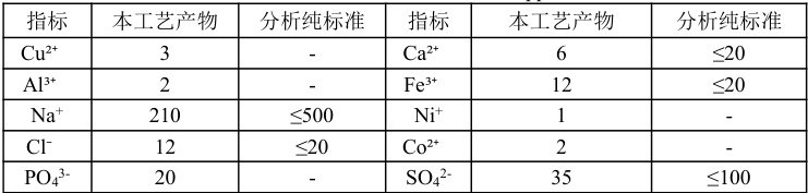 该工艺所得产品,产物纯度 299.8% ,平均铬回收率为 98.5% ,经XRD与ICP-MS分析,杂质含量符合分析纯标准[8]。最终产物杂质含量见表2。