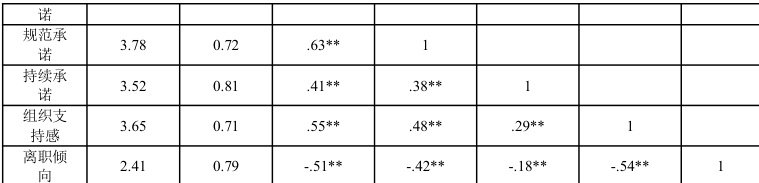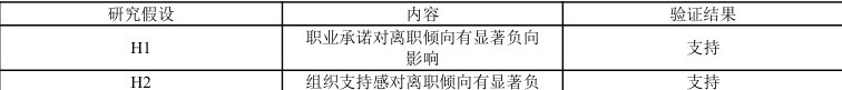 (三)本研究通过相关分析和回归分析证实,职业承诺和组织支持感均是离职倾向的显著负向预测因