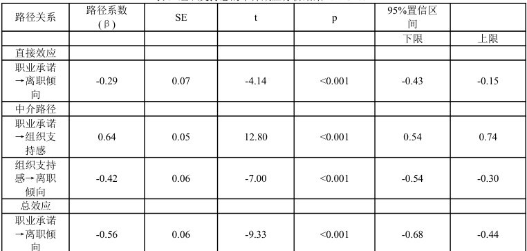 职业承诺对离职倾向的直接效应显著( β=-0.29 , p<0.001;