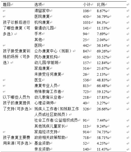 表 1 特殊儿童参与康复训练情况统计表