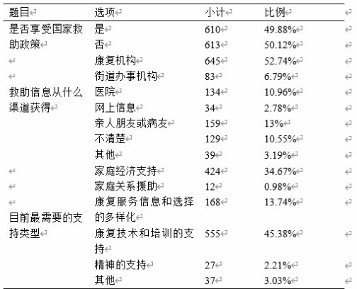 表 2 特殊儿童家庭救助及支持需求情况统计表