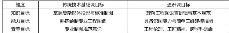 此次《画几与制图》工科通识课建设,相较于传统的技术基础课而言,首先按工科通识课要求更新了课目标。