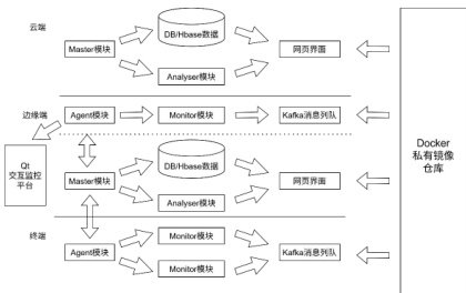 系统设计采用了一种典型的主从(Master-Agent)分布式架构,并融合了模块化设计思想,以实现高可扩展性与职责分离。如图 2 所示,系统核心由 Master 模块与 Agent 模块构成。Agent 模块作为数据采集端,被部署在需要监控的边缘节点上,其下属的 Monitor 模块负责实时抓取容器及主机的多维性能指标,确保了数据来源的广度与时效性。Master 模块则作为系统的控制与决策中心,汇集来自多个Agent 的数据,其内置的Analyser 模块专门负责对海量监控数据进行聚合、分析与异常检测,构成了系统的“智能大脑”。这种主从分离的设计使得系统能够轻松管理成百上千的边缘节点,并通过将数据统一存储于DB/HBase 这类分布式数据库中,为历史数据查询与大规模分析提供了坚实基础。此外,独立的Docker 私有镜像仓库保障了容器镜像的分发安全与版本控制,而Qt 交互监控平台与网页界面则为管理员提供了灵活、直观的可视化操作入口,满足了不同场景下的管理需求。