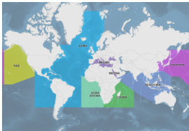 目前全球主要在运行的是六大维护区,覆盖范围详见图 2.1,其对应的包括:北大西洋的大西洋电缆维护协议区(ACMA)、地中海及黑海、红海区域的地中海电缆维护协议区(MECMA)、南大西洋与南印度洋的两洋电缆维护协议区(2OCMA)、东南亚及印度洋的东南亚与印度洋电缆维护协议区(SEAIOCMA)、北太平洋的北美维护协议区(NAZ)和横滨维护协议区(YZ)。每个区域覆盖明确的地理范围,由一艘或多艘签约电缆维修船待命,负责修复区域内所有签约海缆的故障。