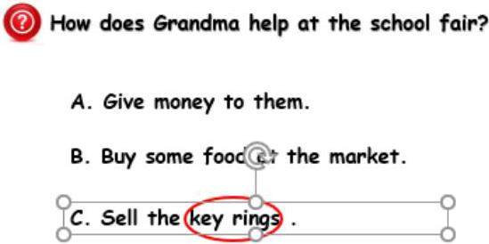 如新思维3A Chapter4 At the school fair Part C本课语篇重点是讲解一个在school fair中发生的故事,教师在阅读之前以“整体教学模型化”设计了一个总领全文的问题:How does Grandma help at the school fair? 让学生们带着问题看视频,有目的性,有针对性。美国心理学家布鲁纳指出: “教学过程是一种提出问题和解决问题的连续性活动。”思想总是从问题开始。设置恰当的问题犹如一针兴奋剂,它能够激发学生学习的积极性,启发学生思考,开发想象力和创造力。教师在此以思维为点进入课文,从语篇总体上去把握课文的中心思想,而且在反馈的时候同时设计的三个选项答案,适当降低难度,这样有利于学生全体参与,得到锻炼。