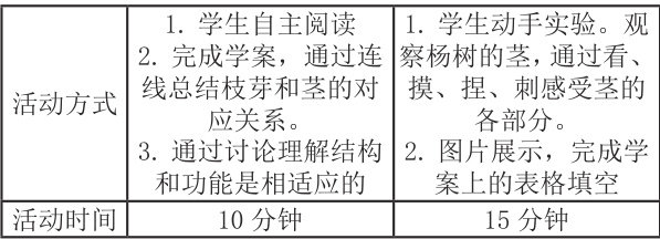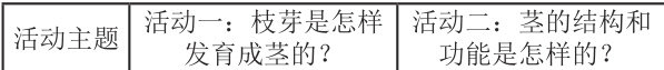 观察推论二:本课通过观察、小组合作、演示实验等方式让学生认识到枝芽是怎样发育成茎的以及木本植物茎的各部分结构和功能。培养了学生的动手能力,加深了结构与功能观的观念认识。