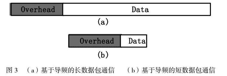 经典信息论的结果告诉我们,当分组长度足够大时,存在信道编码,使得在接收机上几乎可以完全重构信息。然而,当分组长度较小时,在接收机处总是存在不可忽略的解码错误概率[13,15]。如图3(a)中的较长分组比图3(b)中的较短分组具有更好的可靠性性能。但另一方面,给定其它所有系统参数不变,较短的分组虽然导致较高的错误概率,但能实现较低的通信延迟。一般数据传输过程中除了要传输的实际数据之外,还存在不可忽略的通信开销。对于基于短分组的URLLC传输,导频开销甚至可能成为影响通信延迟和传输能量效率的主要因素。因此考虑进一步降低通信延迟开销并实现有效的传输设计是基于短分组URLLC传输的巨大挑战。